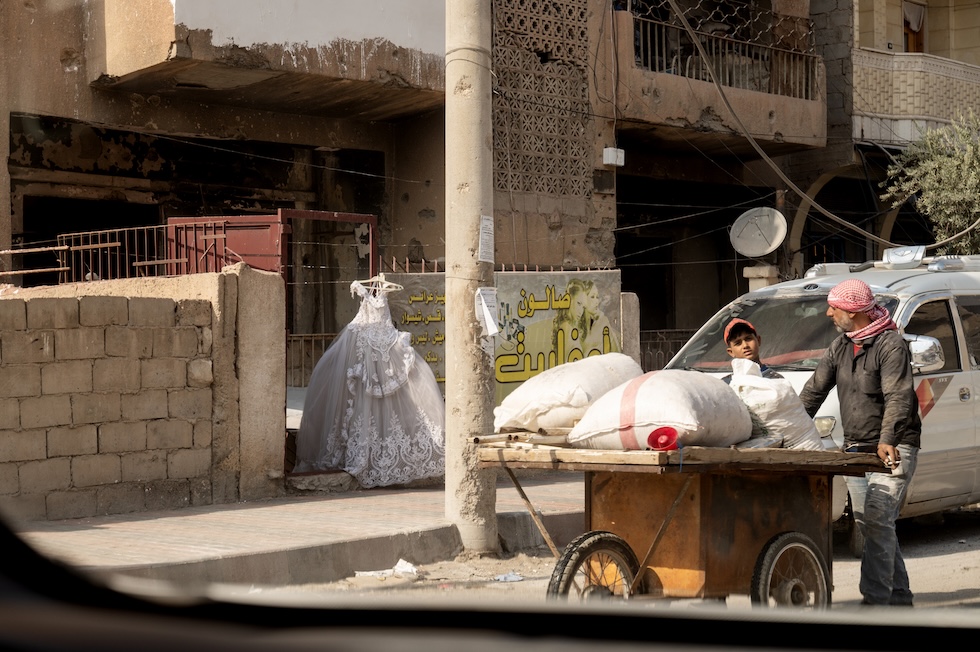 Accanto al vialone d’ingresso di Deir Ezzor c’è uno stadio in rovina che un tempo poteva ospitare decine di migliaia di persone e dall’altro lato c’è un cimitero di mezzi militari, camion e blindati con i cingoli accatastati in disordine e lasciati al sole. Tre quarti di Deir Ezzor sono stati ridotti in macerie dai bombardamenti del regime di Bashar al Assad e il livello di devastazione è simile a quello della periferia di Damasco, ma qui ci sono anche quasi trecentomila abitanti. Sono assuefatti al panorama di rovine e vivono e trafficano nei quartieri meno colpiti.