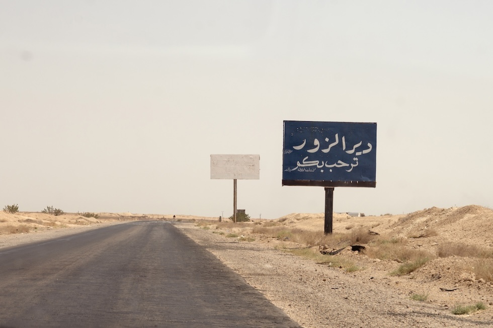 Il cartello dice: “Deir Ezzor vi dà il benvenuto”, Deir Ezzor, 14 luglio 2025 (Gabriele Micalizzi, CESURA, per il Post)