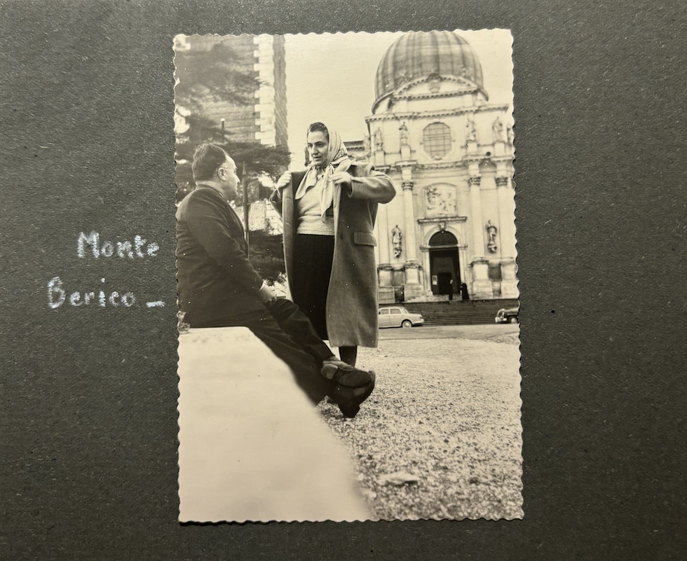 Zio Gianni e zia Carla in gita al Santuario Santa Maria di Monte Berico (Vicenza). Fine anni Cinquanta (archivio Antonio Stella)
