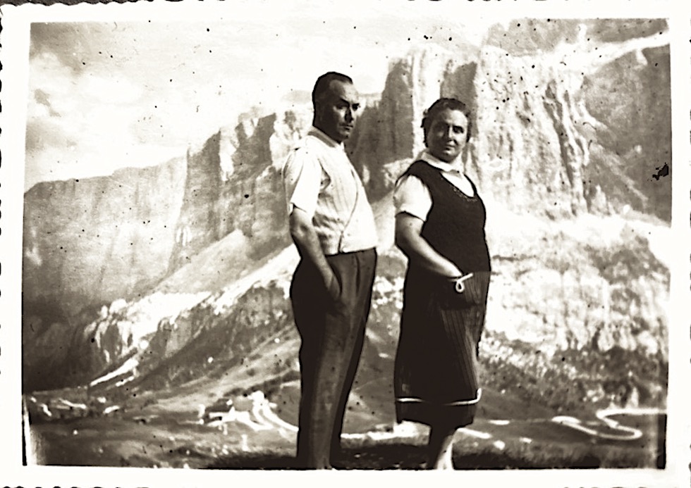 Zio Gianni e zia Carla in vacanza sulla Dolomiti sopra Selva di Val Gardena (Bolzano). Fine anni Cinquanta (Archivio Antonio Stella)