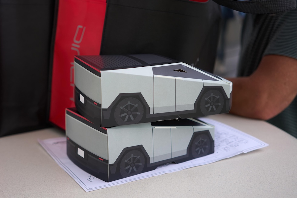 Le scatole dei panini a forma di Cybertruck Tesla, esaurite dopo i primi giorni (EPA/ALLISON DINNER)