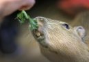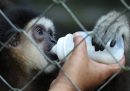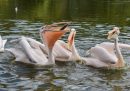 Questa settimana a St. James’s Park, uno dei parchi reali di Londra, sono stati fotografati tre degli oltre quaranta pellicani che vivono nei dintorni del lago del parco. Uno di loro sta per afferrare un pesce lanciatogli da un membro del personale e sotto il becco spalancato si vede bene la grande sacca golare che caratterizza i pellicani. Sempre a Londra, c’è la fotografia dell’incursione di una volpe durante una partita di cricket; poi un cerambice muschiato a Tallinn, una murena che emerge da un banco corallino a Vanuatu e per finire un gibbone domestico che viene nutrito con un biberon da un’addetta del centro di recupero per gibboni di Raub, in Malaysia.