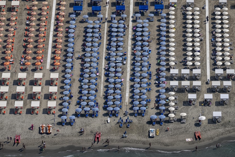 Una foto dall’alto di alcuni stabilimenti della Versilia ad agosto del 2024 (ANSA/CLAUDIO GIOVANNINI)