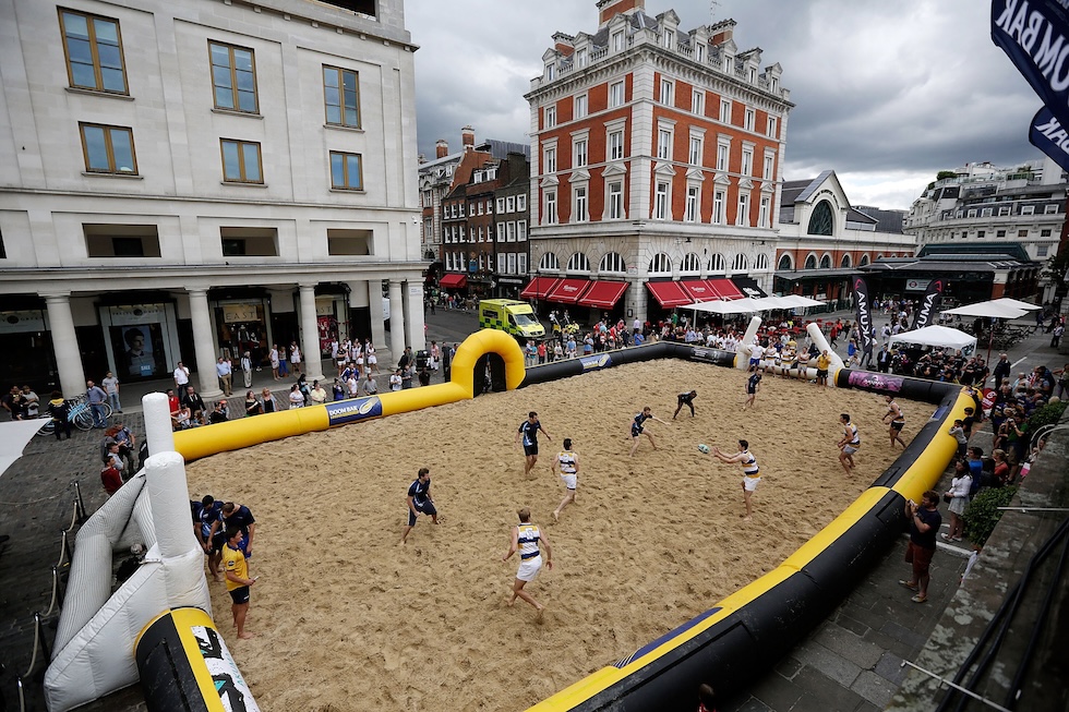 Una partita dimostrativa di beach rugby a Covent Garden, Londra, Inghilterra, nel 2009 (Matthew Lloyd/Getty Images)