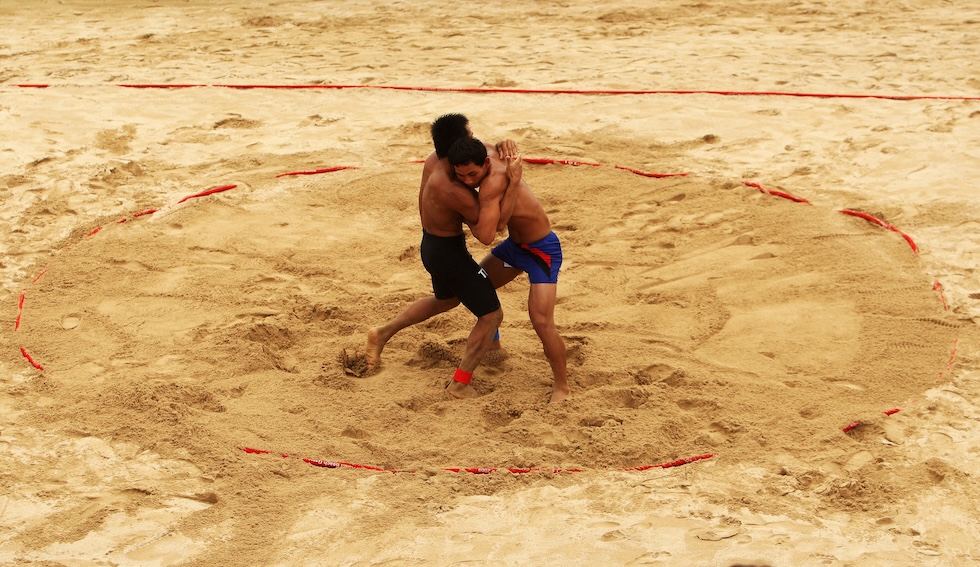 Un incontro di lotta libera su sabbia agli Asian Beach Games del 2008 a Bali, Indonesia (Mark Dadswell/Getty Images)