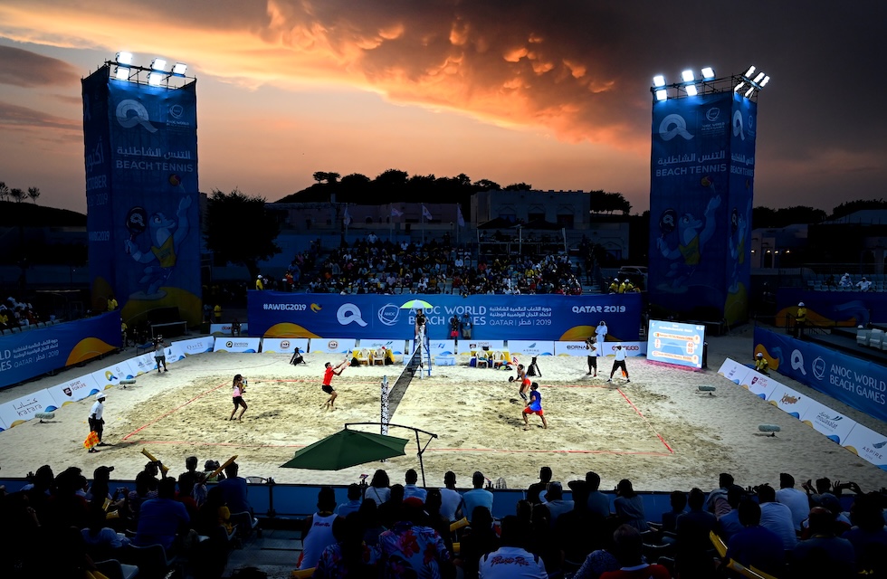 Una partita di beach tennis agli ANOC World Beach Games del 2019 di Doha, in Qatar (Mark Runnacles/Getty Images for ANOC)