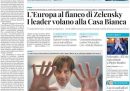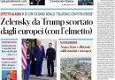 Le prime pagine di oggi dedicano quasi tutte l’apertura all’incontro previsto oggi alla Casa Bianca, dove molti importanti leader europei accompagneranno il presidente ucraino Volodymyr Zelensky da Donald Trump, in una visita organizzata dopo l’incontro in Alaska tra il presidente americano e quello russo Vladimir Putin. Altro tema che trova spazio è quello delle grandi proteste che ci sono state domenica in Israele contro il governo, organizzate dalle famiglie degli ostaggi per chiedere la fine della guerra. Si parla ancora del conduttore televisivo Pippo Baudo perché lunedì iniziano le cerimonie per la sua morte, con una camera ardente aperta al pubblico al teatro delle Vittorie a Roma.