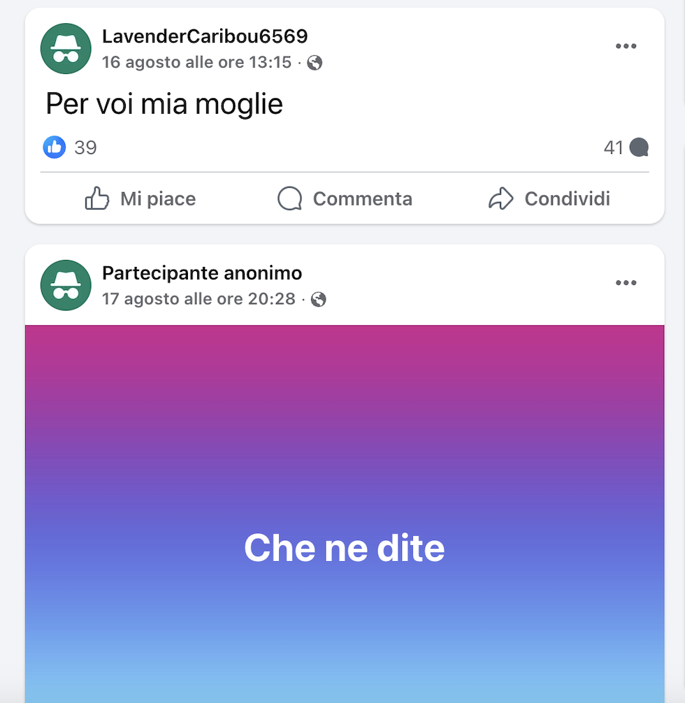 Uno screenshot dal gruppo “Mia Moglie” su Facebook