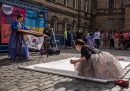 Passeggiando per il centro di Edimburgo nei giorni del Fringe è quasi impossibile non imbattersi in qualcuno che distribuisce un volantino per gli spettacoli e nelle migliaia di cartelloni che li pubblicizzano, fissati uno accanto all’altro sulle ringhiere, appesi alle fermate di bus e tram, incollati nei bagni dei pub. Di esibizioni ce ne sono di ogni tipo e formato, tutti i giorni per tutto il giorno, e coinvolgono moltissimi spazi della città, dai teatri ai pub, dagli edifici storici alle piazze.