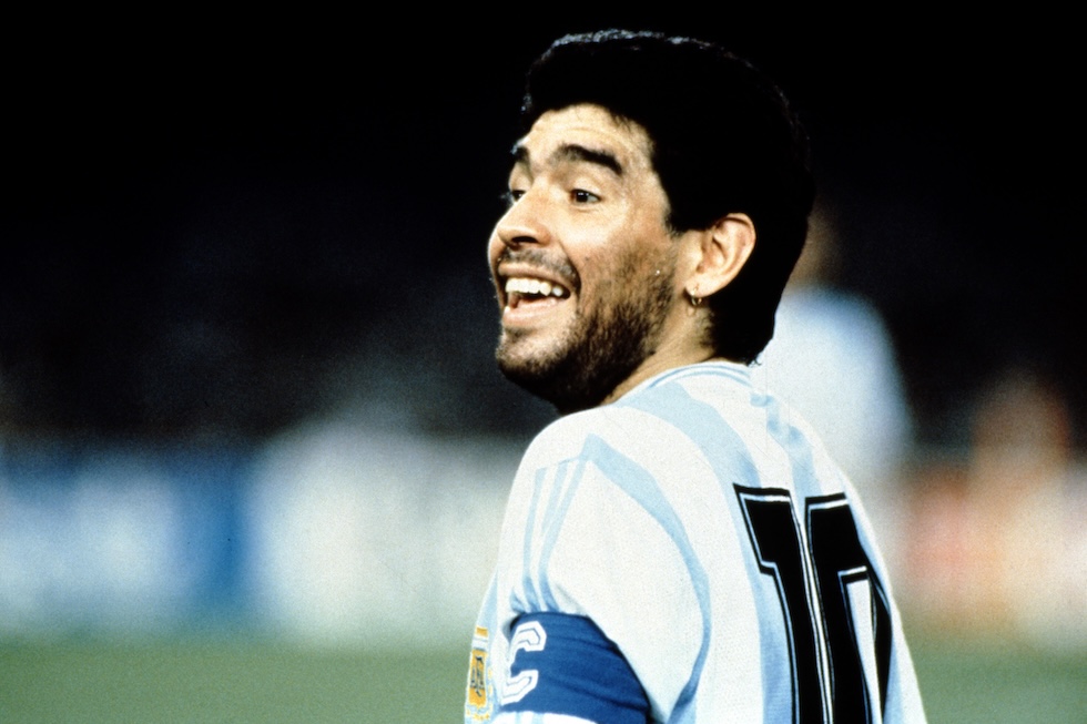 Diego Maradona, con il 10 ma senza cognome sulla maglia, ai Mondiali di Italia ’90 (Franco Origlia/Getty Images)