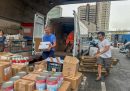 Allo stesso tempo arrivano anche ambulanze, furgoni e camion carichi di cibo provenienti dalle decine di punti di raccolta organizzati nelle sedi di associazioni, partiti e sindacati, nelle biblioteche comunali, nei centri sociali, nei circoli sportivi, in alcune attività commerciali e nelle parrocchie di tutta la Liguria e di altre regioni vicine. I veicoli sostano all’interno degli spazi di Music for Peace, una ong genovese, giusto il tempo di scaricare, oppure si fermano lungo la strada. Alcuni volontari della Croce Rossa e della Protezione Civile, e i lavoratori portuali noti come “camalli”, li svuotano e portano la merce in un magazzino.