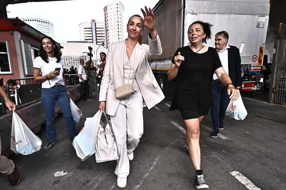 La sindaca di Genova Silvia Salis alla raccolta di generi alimentari, Genova, 27 agosto 2025 (ANSA/LUCA ZENNARO)