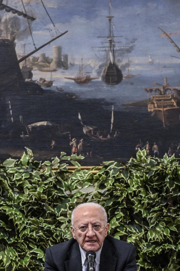 Vincenzo De Luca a una conferenza stampa il 9 luglio 2025 (ANSA/CIRO FUSCO)