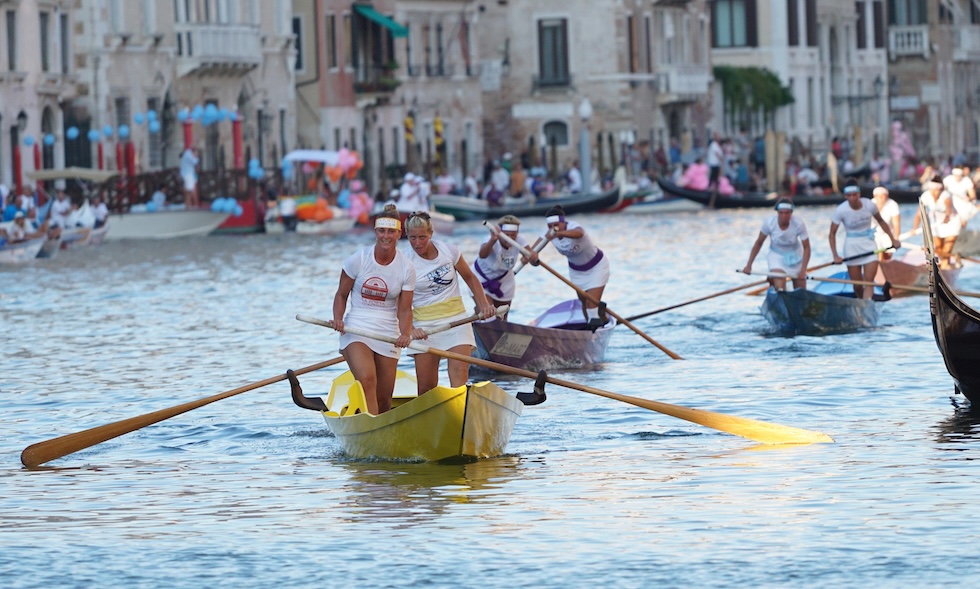 Giulia Tagliapietra, che vi parteciperà per l’ennesima volta (ha 34 anni, la prima fu a 17), parla di «coppie che si formano già a ottobre, e di una stagione di gare che inizia ad aprile e ha come culmine proprio la Regata Storica». Esistono sponsor – che pagano per avere i loro loghi su barche, maglie o fascette che chi voga porta in fronte – e premi in denaro: un po’ più di tremila euro per i vincitori e le vincitrici.