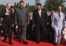 Le immagini trasmesse dalla televisione di stato cinese hanno mostrato Xi Jinping mentre stringe, a turno, la mano a Putin, poi a Kim Jong Un e agli altri ospiti al momento del loro arrivo. Dopo uno scambio di convenevoli, i leader si sono incamminati lungo il tappeto rosso. Putin alla destra del presidente cinese e Kim Jong Un alla sua sinistra, i tre hanno guidato il gruppo verso piazza Tienanmen per la parata.