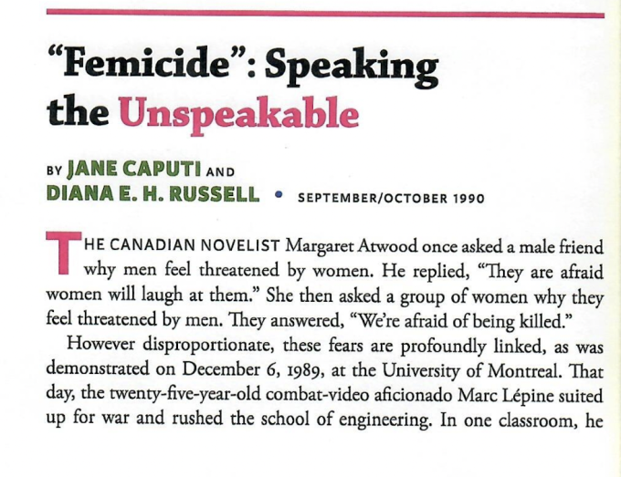 L’articolo di Diana E. H. Russell e Jane Caputi pubblicato sul mensile femminista Ms. Magazine nel 1990.
