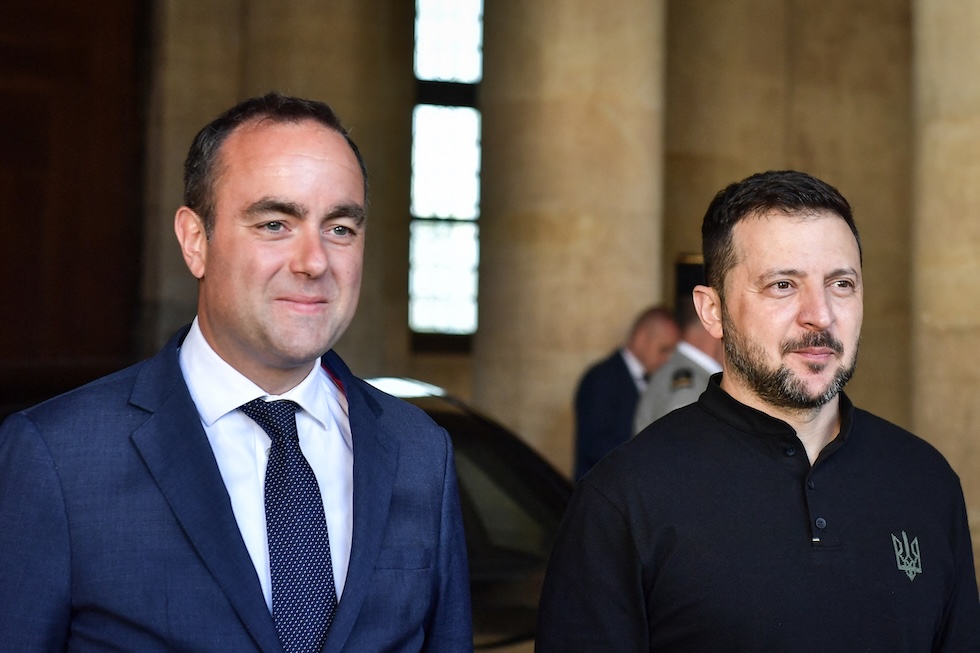 Sébastien Lecornu e il presidente ucraino Volodymyr Zelensky nel 2024 (ANSA/Firas Abdullah/ABACAPRESS.COM)