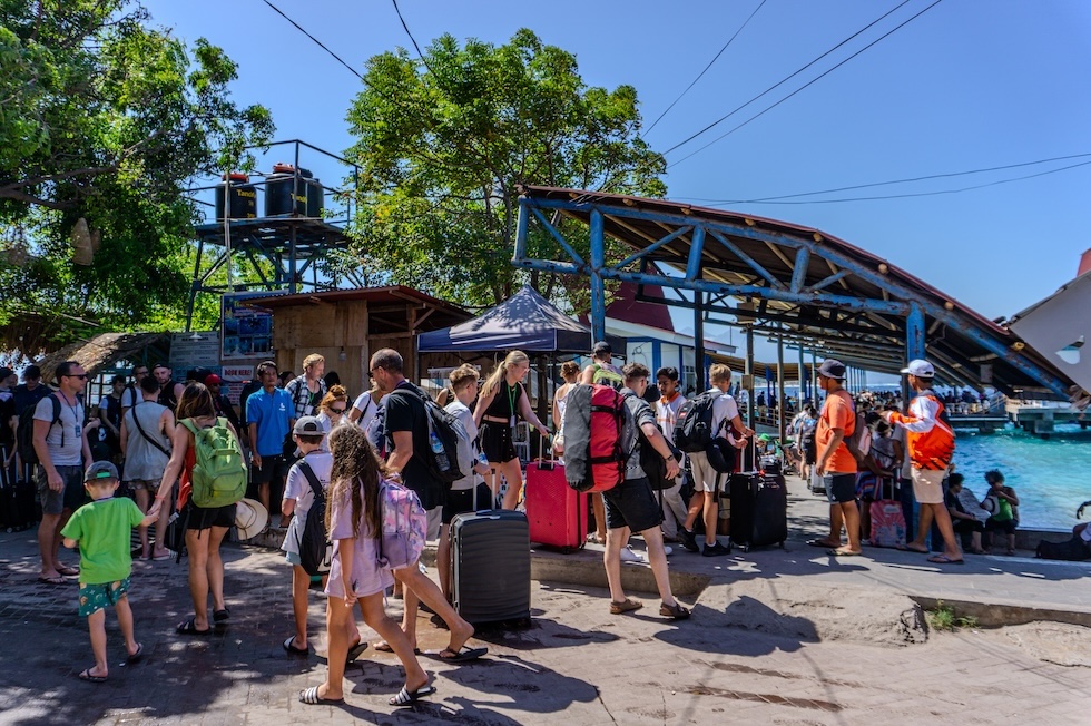 La calca davanti al molo d’attracco dei battelli che arrivano da Bali o Lombok (Valerio Valentini/Il Post)