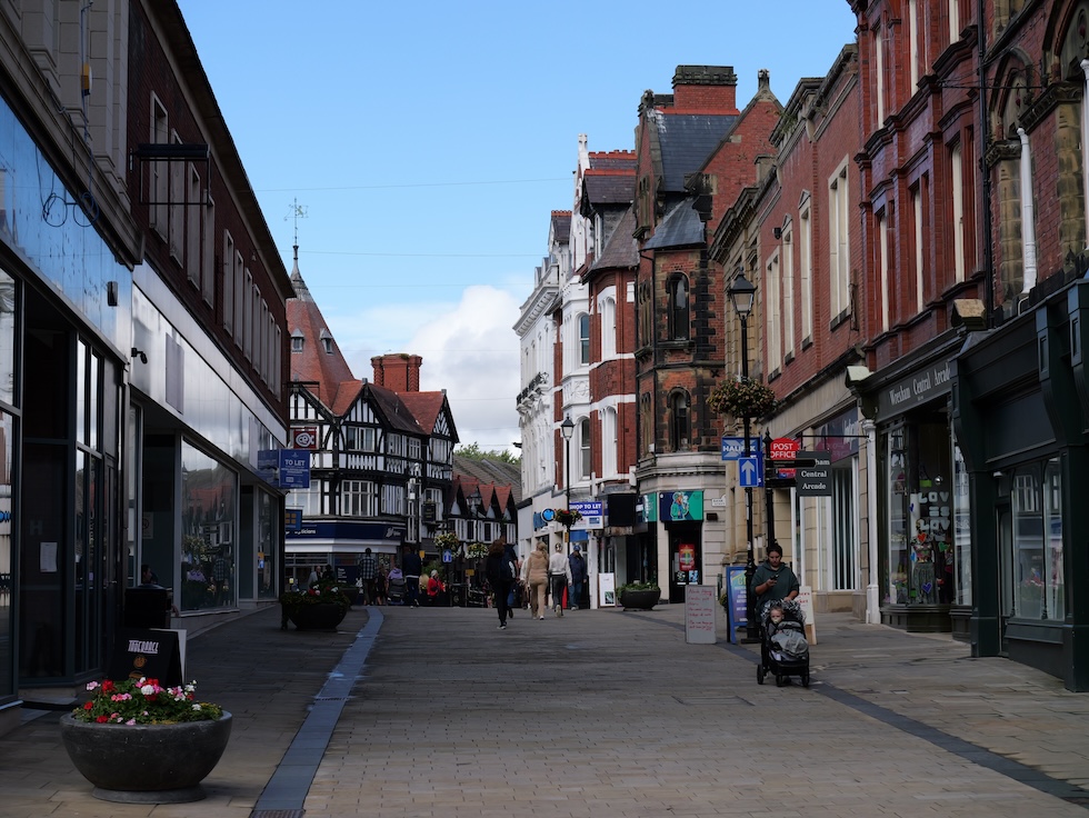 L’high street nel centro di Wrexham, il 3 settembre (Matteo Castellucci/il Post)