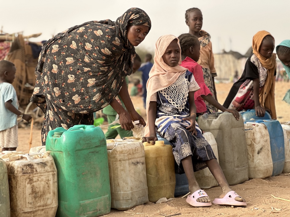 Alcune persone aspettano di poter prendere dell’acqua a Tawila, il 26 aprile 2025 (OCHA/Handout via Xinhua via ZUMA Press/ANSA)