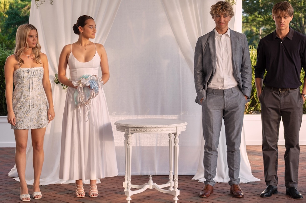 Una scena da The Summer I Turned Pretty (Erika Doss / ©Amazon/MGM Studios / Courtesy Everett Collection). Da sinistra: Taylor (l’amica di Belly), Belly, Jeremiah e Conrad.