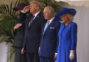 Mercoledì il presidente degli Stati Uniti Donald Trump ha incontrato re Carlo III e altri membri della famiglia reale al castello di Windsor, una delle più importanti residenze della famiglia reale, in Inghilterra. È stata la seconda visita di Stato di Trump e della moglie Melania nel Regno Unito (la prima fu nel 2019), ed è stata eccezionale: per il loro arrivo è stata organizzata un’elaborata parata militare, una processione in carrozza, spettacoli musicali e un sorvolo delle Red Arrows della Royal Air Force britannica, che di solito non viene mobilitata per le visite di Stato.