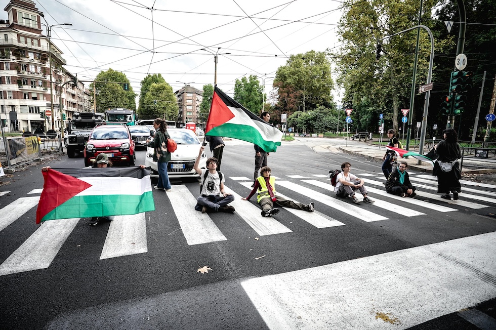 Ai cortei c’erano anche i vari gruppi locali dei Giovani Palestinesi d’Italia, un’organizzazione di cui fanno parte tra gli altri ragazzi e ragazze italiani di seconda o terza generazione, cioè figli di persone immigrate. A Torino Ultima Generazione, insieme ad alcuni attivisti di Palestine Action Italia, ha bloccato in modo pacifico corso Vittorio Emanuele II, una delle arterie principali della città. «Lo abbiamo fatto perché le immagini strazianti che arrivano da Gaza ci spingono ad agire. Siamo stanchi di vedere immagini di bambini ammazzati, persone che scavano a terra a mani nude nella speranza di trovare i propri cari, medici e giornalisti bersagli di cecchini spietati», hanno scritto.