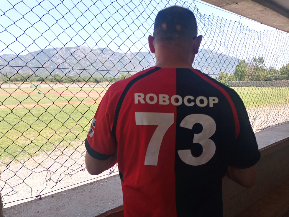Sono tutti gasati per la partita, ma l’adrenalina e lo spirito combattivo montano davvero quando arriviamo allo stadio e indossano la maglia della squadra. Ognuno ha sulla schiena il numero e il nome di battaglia: Giuseppe Tocco è “Attila”, Daniela “Xena”, Andrea Spiga “Spiger Man”, Guendalina “Wendy”, Giancarlo Farigu “Robocop” perché «ho talmente tante viti in corpo che neanche un negozio di ferramenta». Alle tre di pomeriggio con un caldo da svenire l’erba dello stadio brilla sotto il sole a picco, le gradinate sono vuote per il caldo ma gli spettatori si assiepano sotto gli spalti.
