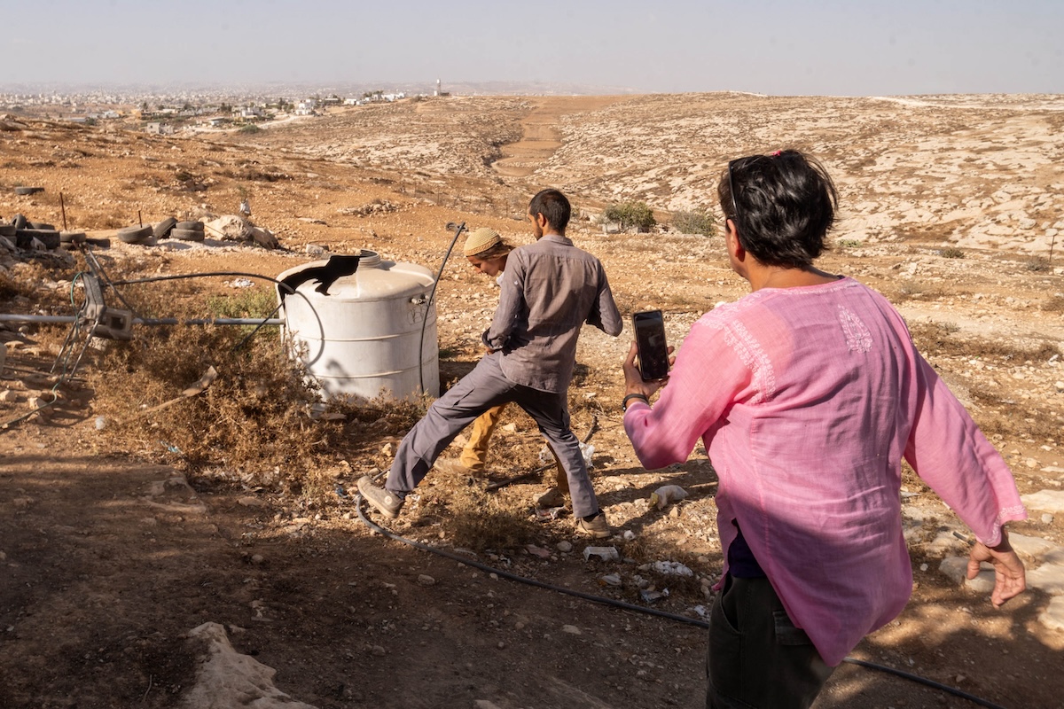 Un gruppo di attivisti israeliani, che è organizzato in turni di guardia in un paese vicino per difendere i palestinesi, è arrivato quasi subito, ha marcato a uomo i quattro coloni e ha fatto ostruzionismo per impedire loro di muoversi dentro e attorno alla casa. Anche gli attivisti hanno filmato tutto con telefoni e videocamere, perché sanno che il materiale girato può diventare una prova decisiva.