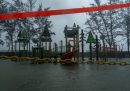 Il video mostra un ponte vicino a Guangfu distrutto dall’esondazione