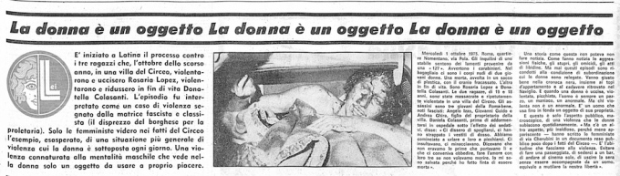 In un altro manifesto scritto collettivamente negli anni del processo del Circeo i movimenti femministi fecero un ulteriore passo nell’analisi: quei fatti, scrissero, avevano provocato «risposte politiche esemplari»: tutti avevano «scaricato le proprie contraddizioni sui fascisti assassini che in quanto fascisti e in quanto assassini» si configuravano «esattamente come tutto il male, permettendo a tutti gli altri di uscire puliti senza sentirsi né coinvolti né complici, e quindi di rimandare per l’ennesima volta il confronto e la presa di coscienza delle proprie responsabilità».