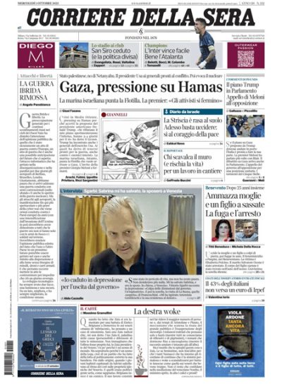 Le due notizie principali in apertura sui giornali di oggi sono entrambe legate alla situazione nella Striscia di Gaza: una è il piano presentato dal presidente degli Stati Uniti Trump l’altro ieri per fermare la guerra a Gaza, con l’attesa per una risposta da parte di Hamas, che Trump ieri ha minacciato di gravi conseguenze nel caso il piano venga respinto, l’altra è l’avvicinamento della Global Sumud Flotilla alla zona di mare di fronte alla Striscia di Gaza in cui Israele potrebbe intercettare e bloccare le barche. I giornali sportivi commentano le vittorie di Inter e Atalanta nelle partite di ieri sera per la Champions League maschile di calcio.
