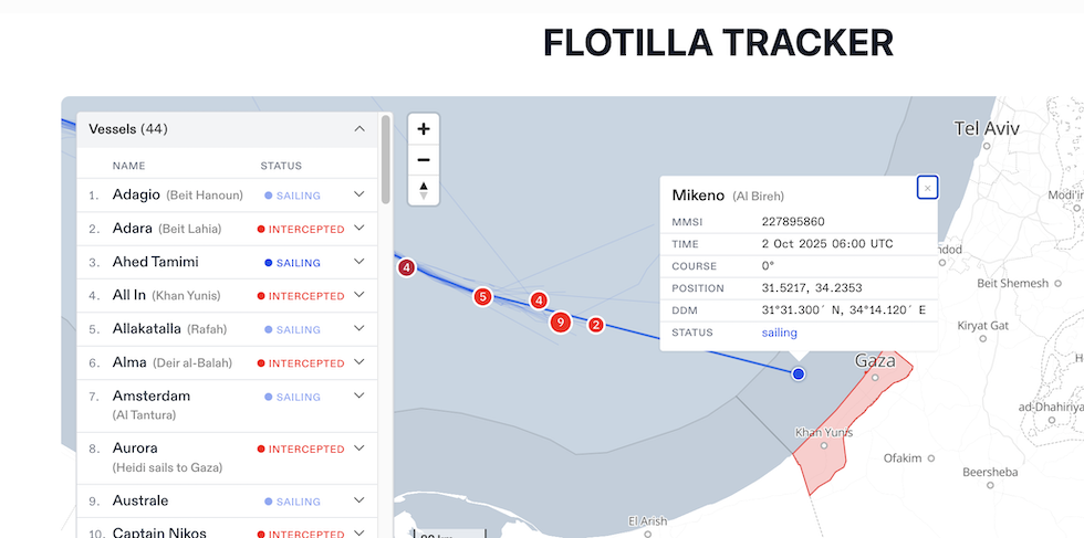 Nella mattina di giovedì, mentre le ultime barche della Flotilla venivano intercettate, il tracker che mostrava la loro posizione segnalava che una di loro, la Mikeno, era riuscita a rompere il blocco ed entrare nelle acque territoriali di Gaza, ma dalla barca non arrivavano più comunicazioni. Non è chiaro se si sia trattato di un errore del sistema, o se la barca ci sia effettivamente riuscita, prima di essere intercettata. Il ministero degli Esteri israeliano ha detto che nessuna barca era riuscita a forzare il blocco navale e anche il comitato organizzativo della Flotilla ha messo in dubbio questa possibilità.