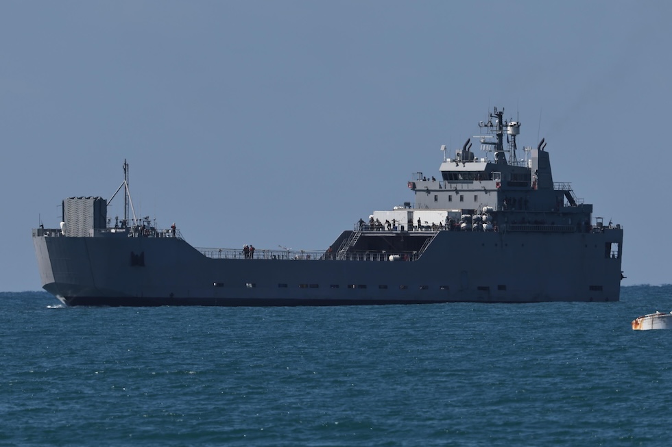 La nave della Marina militare israeliana con a bordo le persone arrestate che arriva ad Ashdod (ANSA/EPA/ATEF SAFADI)