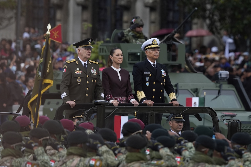 Claudia Sheinbaum alla tradizionale parata militare di Città del Messico, il 16 settembre 2025 (AP Photo/Fernando Llano)