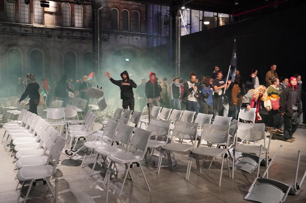I manifestanti alle OGR di Torino (Ansa/Tito Romano)