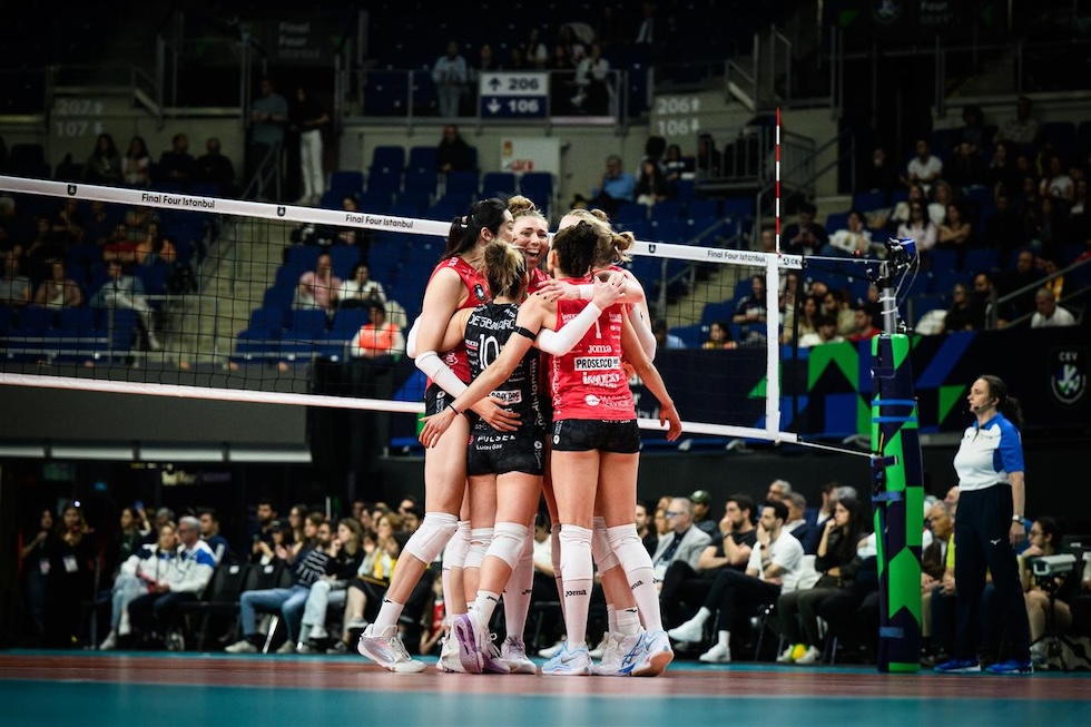 Le giocatrici di Conegliano durante l’ultima finale di Champions League (CEV)
