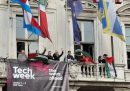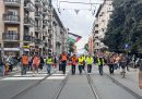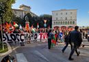 Il corteo passa davanti alla sede del ministero delle Infrastrutture e dei Trasporti a Roma (il Post)