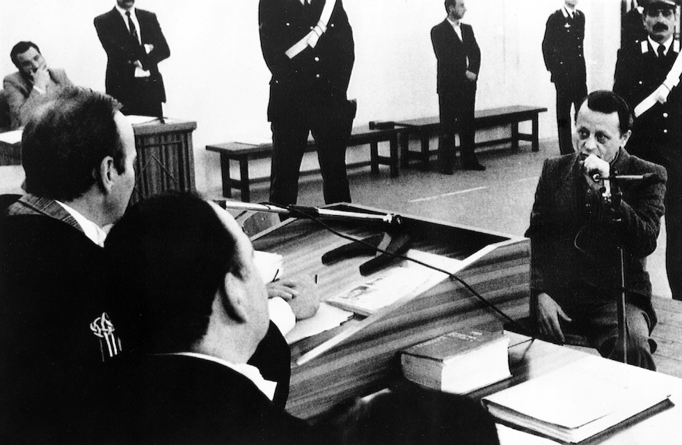 Stefano Delle Chiaie durante un’udienza del processo per la strage di piazza Fontana, il 27 ottobre 1987 (ANSA)