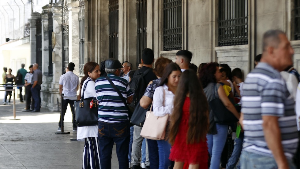 Persone in coda davanti all’ambasciata spagnola all’Avana, Cuba, nel 2024 (ANSA/EPA/ERNESTO MASTRASCUSA)
