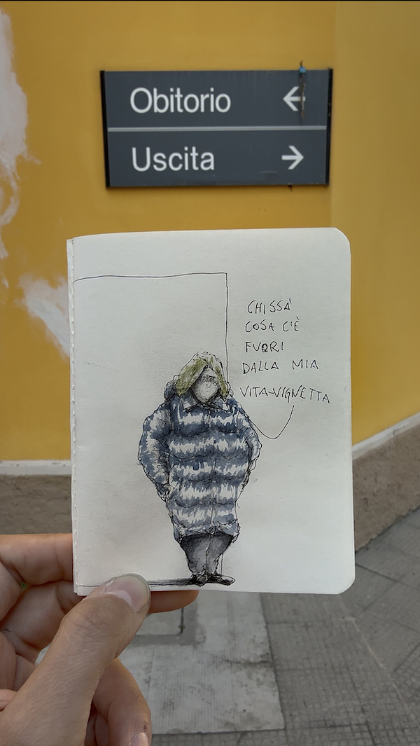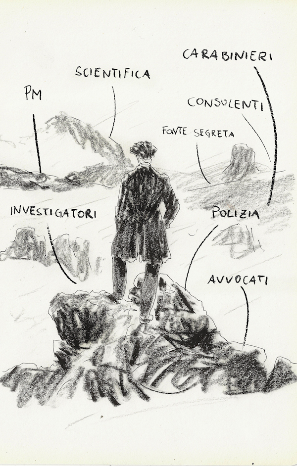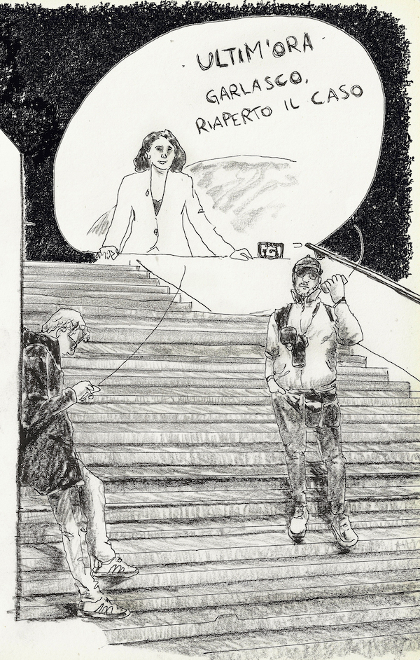 Ed è in questo clima di countdown pigro che succede: l’edizione delle 13 del Tg1 annuncia la riapertura del giallo di Garlasco e l’ipotesi di un assassino diverso da quello stabilito dalla sentenza di Cassazione. Non più Alberto Stasi ma Andrea Sempio, un nome noto solo a chi ha seguito con molta attenzione questi anni di indagini. Lo stesso Sempio che era stato indagato e poi archiviato. Lo stesso Sempio che ora diventa la novità della stagione, la svolta, il finale alternativo di una storia che tutti conosciamo e che nessuno davvero conosce. Io ne approfitto per disegnare.