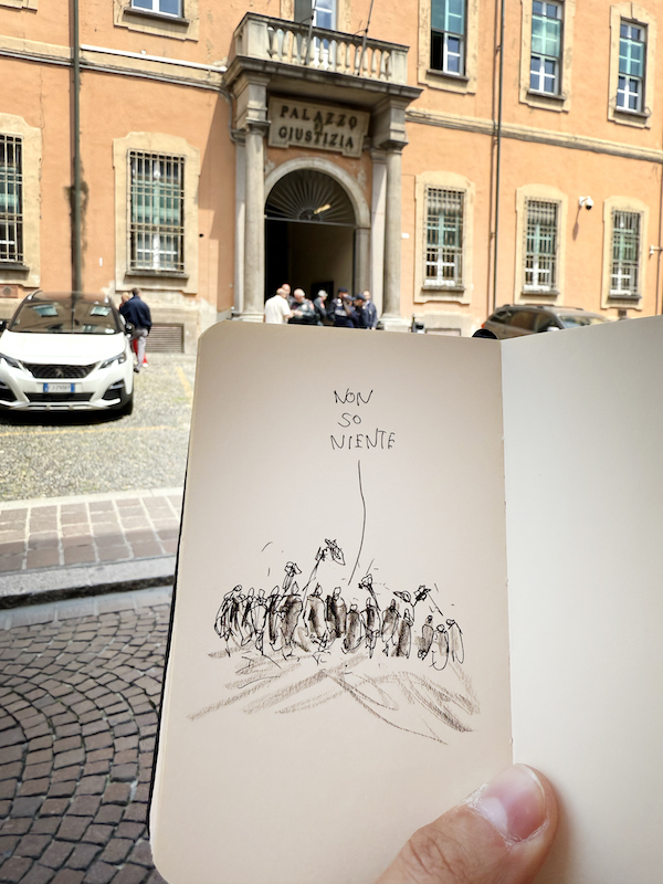 Il 16 maggio 2025, il primo giorno di incidente probatorio, all’ingresso del tribunale di Pavia ci sono giornalisti e operatori di qualunque testata, forse una quarantina di persone.