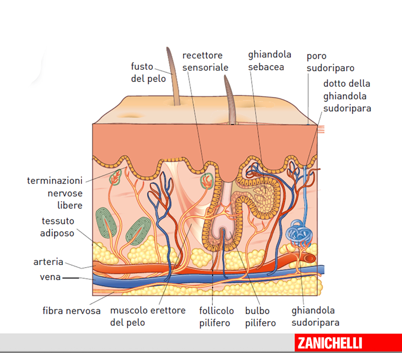 La parte viva del capello è il bulbo, che si trova nel follicolo pilifero, il profondo avvallamento nel cuoio capelluto dove le cellule producono le sostanze come la cheratina che formeranno poi il fusto del capello stesso (lo stesso vale per i peli). Ogni follicolo attua un ciclo in maniera indipendente dagli altri, passando per una fase di crescita in cui il bulbo è attivo (anagen), una di pausa (catagen) e una in cui si libera del capello ormai troppo vecchio facendolo cadere insieme alla parte non più vitale del bulbo (telogen), che intanto si rigenera nel follicolo per il ciclo successivo. In ogni momento, circa un follicolo su dieci è nella fase catagen o telogen, quindi è normale perdere sempre qualche capello, ma una perdita più consistente può essere l’indizio di qualche problema.