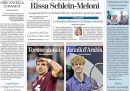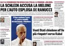 Le prime pagine dei giorni di oggi riprendono la polemica di sabato tra la presidente del Consiglio Giorgia Meloni e la segretaria del Partito Democratico Elly Schlein, che durante il congresso annuale del Partito Socialista Europeo (PSE) ha detto che «la libertà di parola è a rischio quando l’estrema destra è al governo» in un discorso in cui citava anche la bomba esplosa davanti alla casa del giornalista Sigfrido Ranucci. I giornali dedicano spazio anche ad alcuni aggiornamenti sulla situazione nella Striscia di Gaza: la questione della riconsegna dei corpi degli ostaggi israeliani e il passaggio degli aiuti umanitari da Rafah. Su alcuni giornali ci sono le foto delle proteste contro Trump negli Stati Uniti, che si stanno svolgendo con lo slogan No Kings, cioè Nessun re.