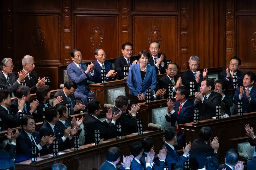 Sanae Takaichi alla Camera dei rappresentanti, dopo essere stata eletta prima ministra (Tomohiro Ohsumi/Getty Images)