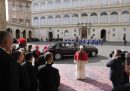 L’incontro è iniziato giovedì. Carlo era accompagnato dalla moglie, la regina Camilla. I tre hanno parlato in udienza privata nello studio del papa, nel Palazzo Apostolico, e si sono scambiati dei regali: Carlo ha donato al papa un’icona di Edoardo il Confessore, re e santo inglese vissuto nell’XI secolo; il papa ha donato invece un mosaico del Cristo Pantocratore. Successivamente c’è stata la preghiera, guidata da Leone e dall’arcivescovo anglicano di York. Si è svolta in latino e in inglese.