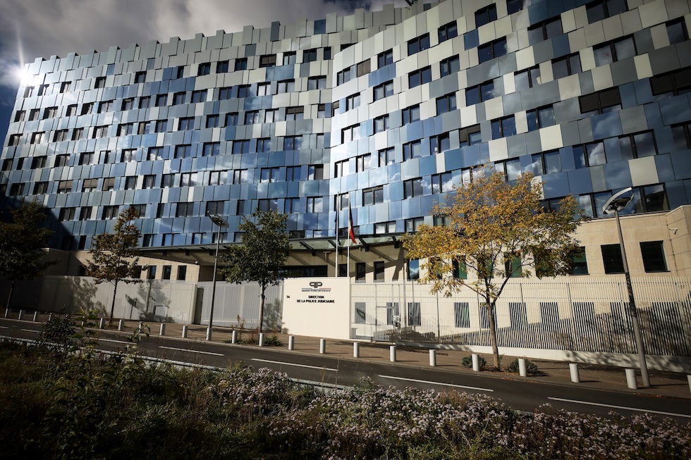 La sede della polizia di Parigi dove sono tenuti i due sospettati, il 26 ottobre 2025 (AP Photo/Thomas Padilla)