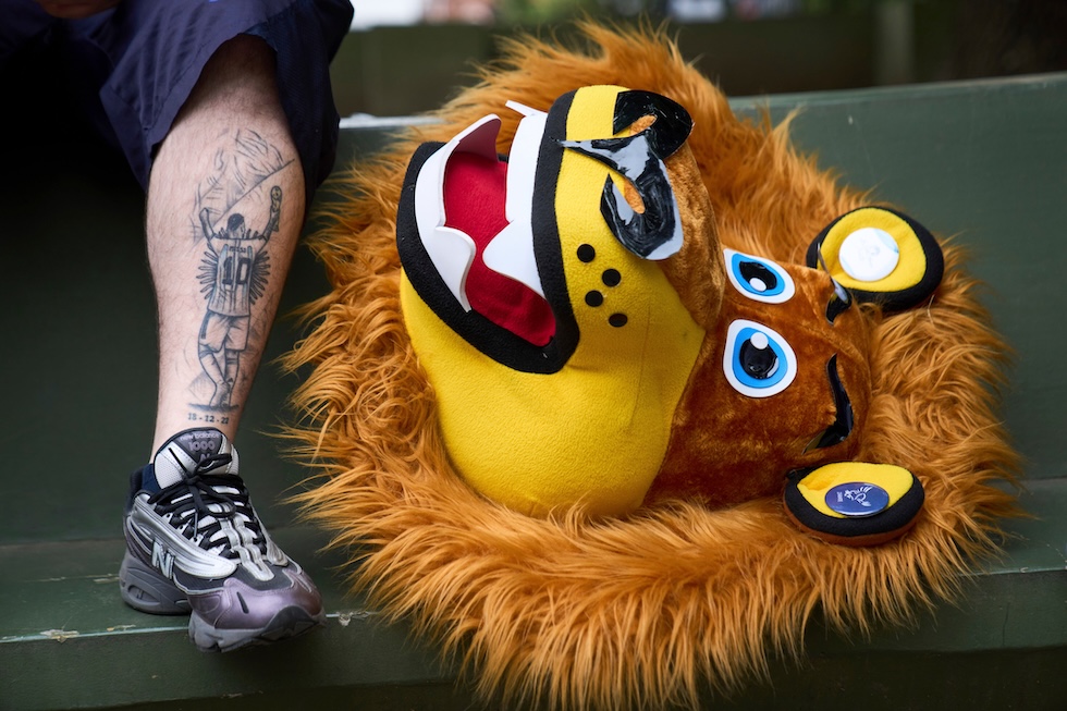 Un sostenitore di Milei con un tatuaggio di Lionel Messi e una maschera da leone, uno dei simboli del presidente (AP Photo/Rodrigo Abd)