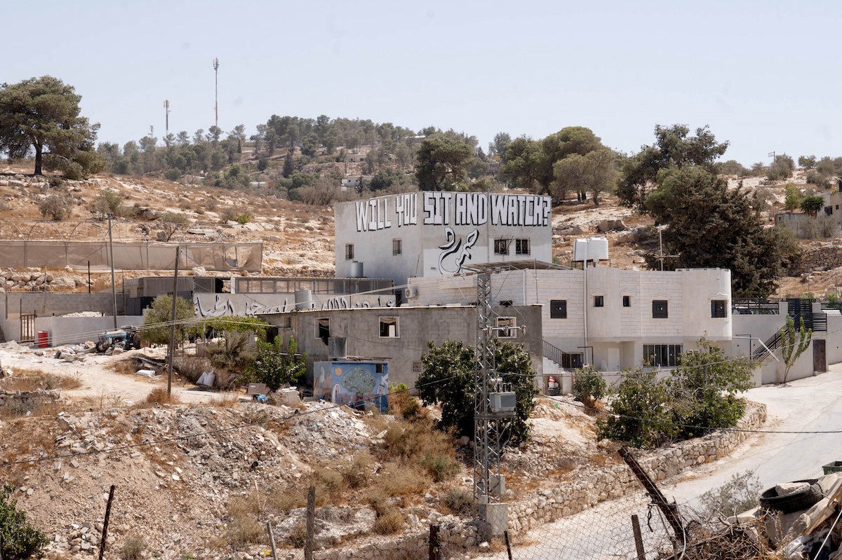 Un edificio davanti alla base degli attivisti ad Al Tawni (Gabriele Micalizzi, CESURA, per il Post)