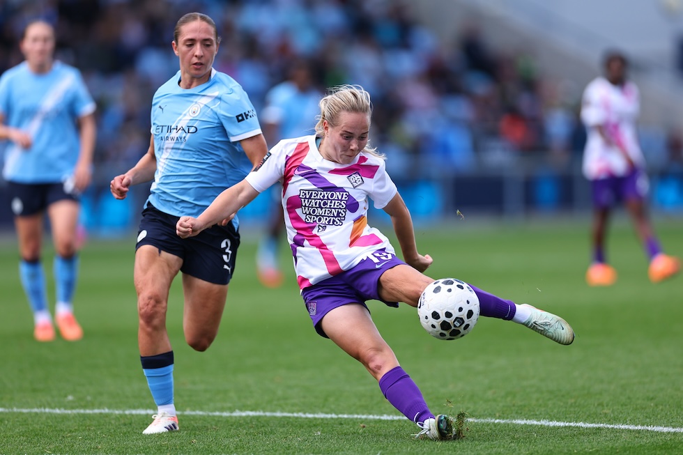 La calciatrice delle London City Lionesses Lotta Lindstrom durante una partita di Super League contro il Manchester City (Robbie Jay Barratt – AMA/Getty Images)